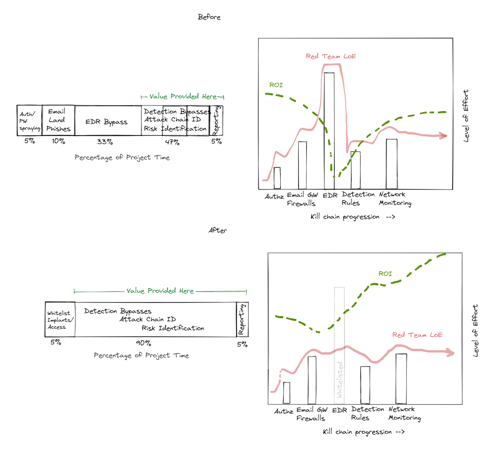 As a Red Team, spending a substantial amount of time on a single control takes away from the rest of the operation and is incredibly expensive. By skipping these controls, we acknowledge their value and are able to identify areas of improvement in other capabilities that aren’t providing the value we’d expect.