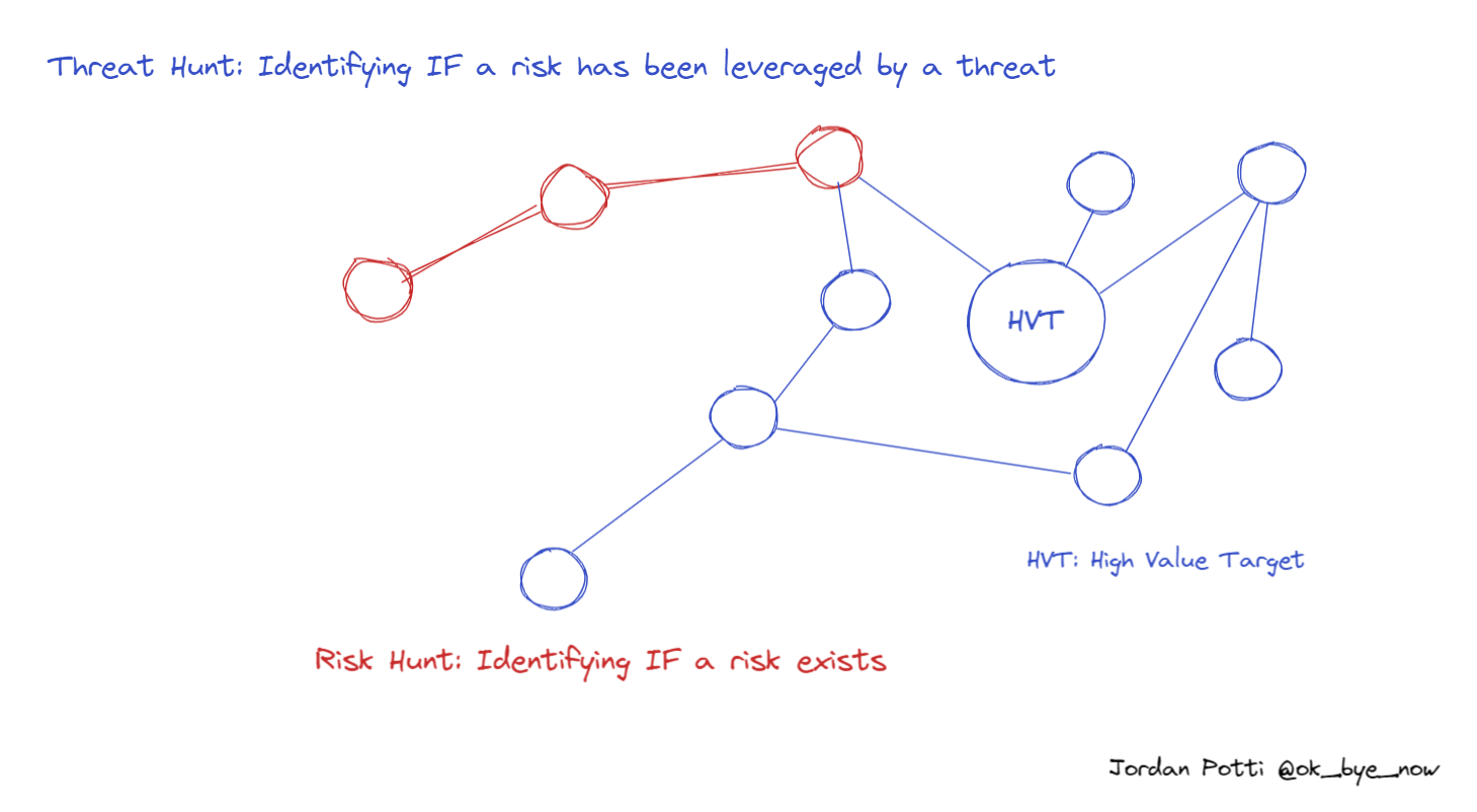 There may be situations where a risk hunt and threat hunt are performed simultaneously. However, a risk hunt is a proactive approach, identifying risk ideally before a threat leverages the risk.