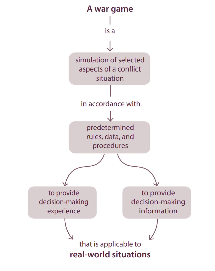 According to the UK Wargaming Handbook, A scenario-based warfare model in which the outcome and sequence of events affect, and are affected by, the decisions made by the players.
